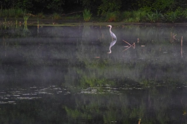 Early morning heron (although the camera is struggling – high zoom and low light).