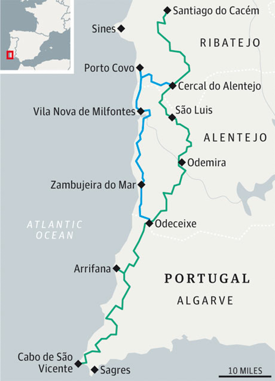 It depends! Heading south is good because you get a definite end point at Cabo do Sao Vicente (although plus a couple of miles to get to Sagres). If doing the coastal route (Fisherman’s Trail), then you have the prevailing wind behind you. But this must be weighed against having the sun in your face all day, every day. Don’t underestimate how hard work that is.
